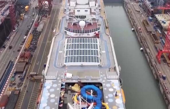 按计划,“爱达·花城号”在今天完成出坞后就将转入码头建造调试阶段,为后续5月底的试航做准备。